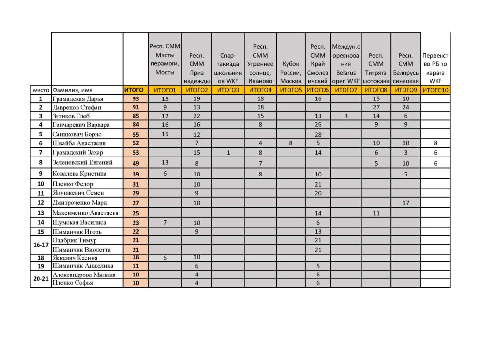 После годичного перерыва возобновляем ведение рейтинга спортсменов и обновляем его критерии. Цель — поощрения лучших спортсменов текущего года, повышения интереса к участию в СММ и соревнованиях у занимающихся, улучшения подготовки наших спортсменов в результате опыта участия в турнирах различного уровня по шотокан каратэ-до и каратэ WKF.